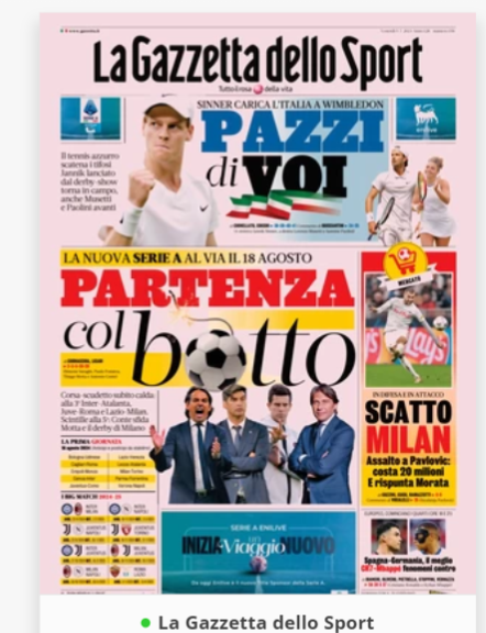 CalcioIn EvidenzaNews “RASSEGNA STAMPA” – Prime pagine sportive nazionali By Giuseppe Sacco il Lug 5, 2024 - 07:00:25 0 Condividi In primo piano sui principali quotidiani sportivi nazionali Factory della Comunicazione CalcioNapoliRassegnaStampa 0 Condividi FacebookTwitterGoogle+ReddItWhatsAppPinterestE-mail