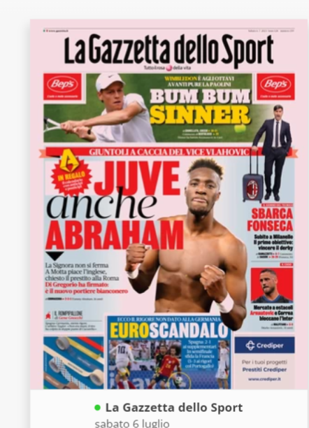 NewsCalcioIn Evidenza “RASSEGNA STAMPA” – Le prime pagine sportive del 6 luglio By Giuseppe Sacco il Lug 6, 2024 - 07:00:12 0 Condividi In primo piano sui principali quotidiani sportivi nazionali Factory della Comunicazione CalcioNapoliRassegnaStampa 0 Condividi FacebookTwitterGoogle+ReddItWhatsAppPinterestE-mail