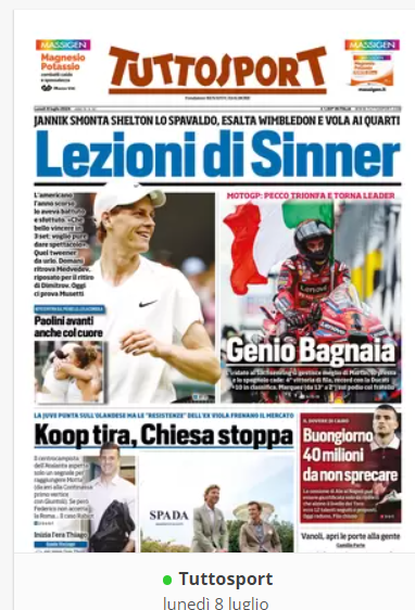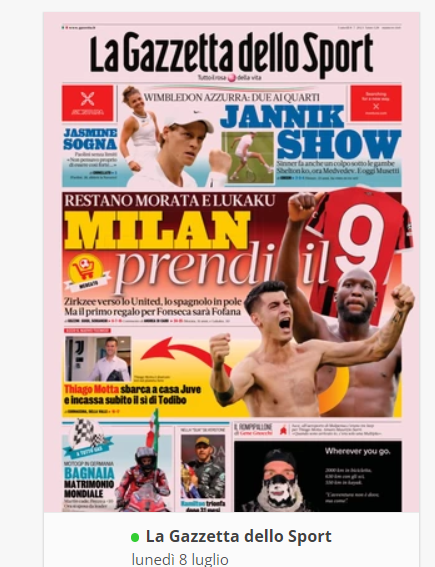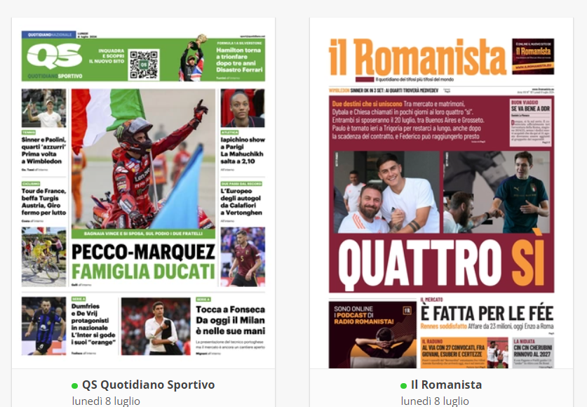 NewsCalcioIn Evidenza “RASSEGNA STAMPA” – Prime pagine sportive dell’ 8 luglio By Giuseppe Sacco il Lug 8, 2024 - 07:00:51 0 Condividi In primo piano sui principali quotidiani sportivi nazionali Factory della Comunicazione CalcioNapoliRassegnaStampa 0 Condividi FacebookTwitterGoogle+ReddItWhatsAppPinterestE-mail