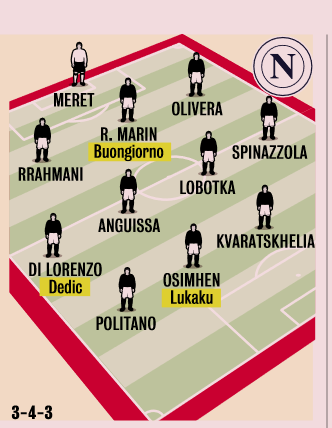 Come riportato dalla gazzetta, si dovrebbe partire dal 3-4-3 ma potrebbe essere il buon vecchio 3-5-2 con Lobotka e Folorunsho in incursione. Per la formula a due punte si dovrà lavorare su Kvara che dà il meglio da ala faccia alla porta e invece, un po’ come nella Georgia, dovrebbe lavorare di spalle e più centrale (ruolo dove può far bene Raspadori).