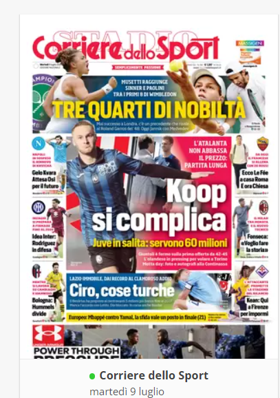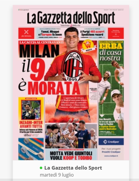 NewsCalcioIn Evidenza RASSEGNA STAMPA” – Prime pagine sportive del 9 luglio By Giuseppe Sacco il Lug 9, 2024 - 07:00:49 0 Condividi In primo piano sui principali quotidiani sportivi nazionali Factory della Comunicazione CalcioNapoliRassegnaStampa 0 Condividi FacebookTwitterGoogle+ReddItWhatsAppPinterestE-mail