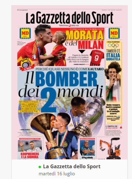 NewsCalcioRassegna Stampa “RASSEGNA STAMPA” – Prime pagine sportive nazionali del 16 luglio By Giuseppe Sacco il Lug 16, 2024 - 07:00:50 0 Condividi In primo piano sui principali quotidiani sportivi nazionali Factory della Comunicazione CalcioNapoliRassegnaStampa 0 Condividi FacebookTwitterGoogle+ReddItWhatsAppPinterestE-mail