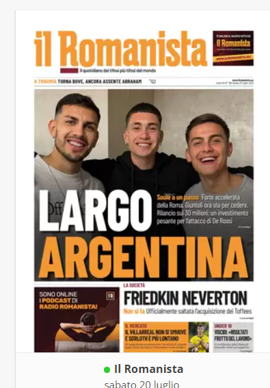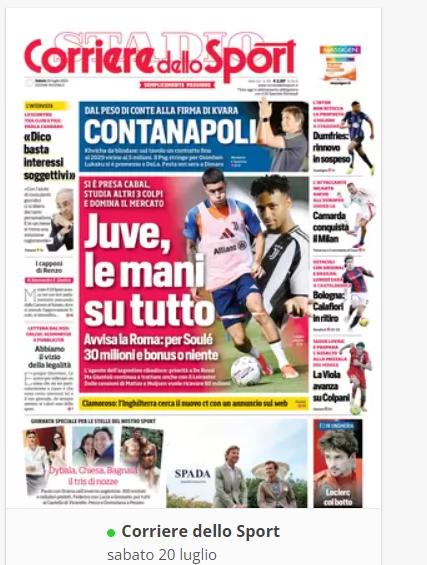 NewsCalcioIn Evidenza “RASSEGNA STAMPA” – Le prime pagine sportive nazionali del 20 luglio By Giuseppe Sacco il Lug 20, 2024 - 07:00:32 0 Condividi in primo piano sui principali quotidiani sportivi nazionali Factory della Comunicazione CalcioNapoliRassegnaStampa 0 Condividi FacebookTwitterGoogle+ReddItWhatsAppPinterestE-mail