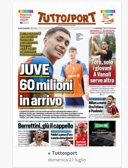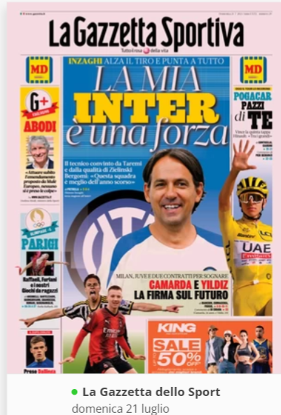 NewsCalcioRassegna Stampa “RASSEGNA STAMPA” – Prime pagine sportive del 21 luglio By Giuseppe Sacco il Lug 21, 2024 - 07:30:32 0 Condividi In primo piano sui principali quotidiani sportivi nazionali Factory della Comunicazione CalcioNapoliRassegnaStampa 0 Condividi FacebookTwitterGoogle+ReddItWhatsAppPinterestE-mail