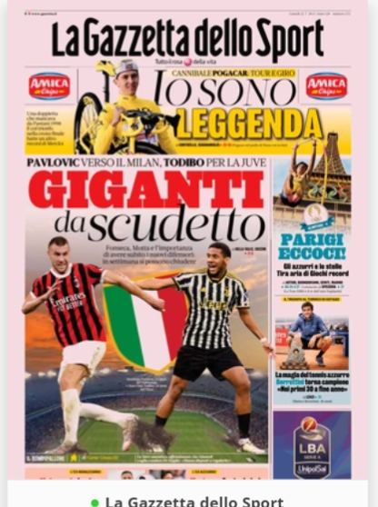 NewsCalcioIn Evidenza “RASSEGNA STAMPA” – Le prime pagine sportive del 22 luglio By Giuseppe Sacco il Lug 22, 2024 - 07:00:18 0 Condividi In primo piano sui principali quotidiani sportivi nazionali Factory della Comunicazione CalcioNapoliRassegnaStampa 0 Condividi FacebookTwitterGoogle+ReddItWhatsAppPinterestE-mail