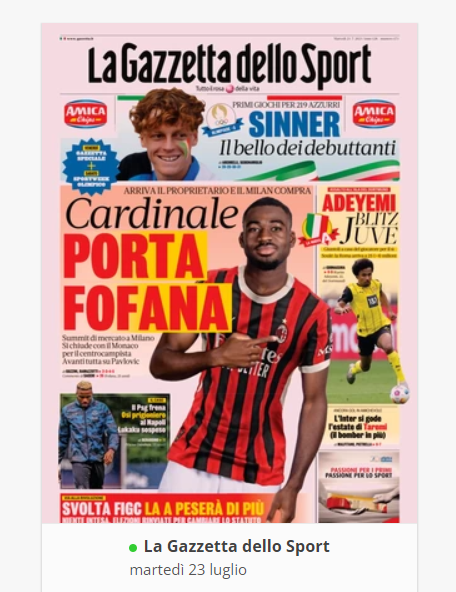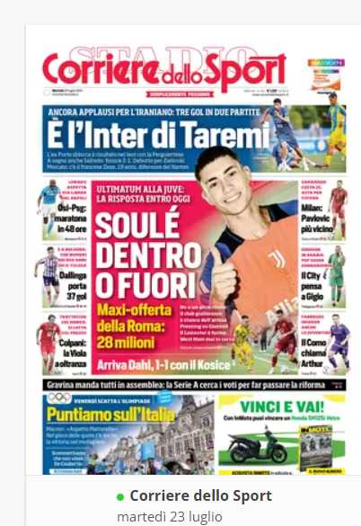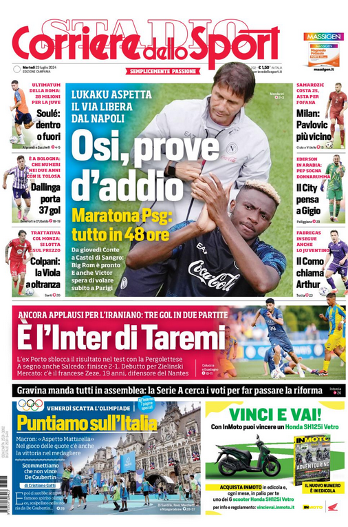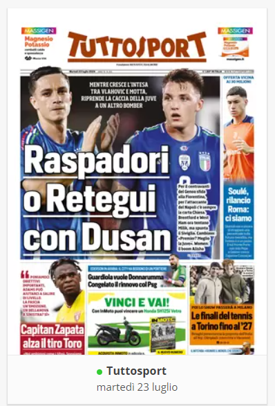 NewsCalcioIn Evidenza “RASSEGNA STAMPA” – Le prime pagine sportive del 23 luglio By Giuseppe Sacco il Lug 23, 2024 - 07:00:00 0 Condividi In primo piano sui principali quotidiani sportivi nazionali Factory della Comunicazione Calciocarta stampataNapoliRassegna 0 Condividi FacebookTwitterGoogle+ReddItWhatsAppPinterestE-mail