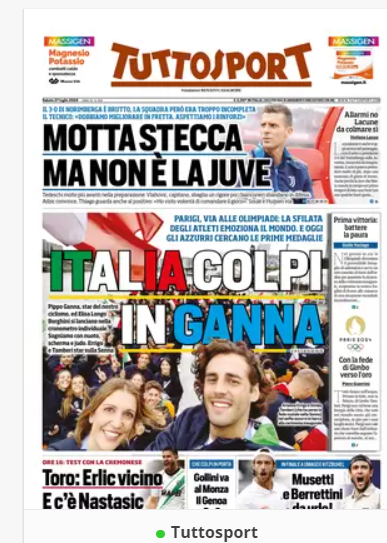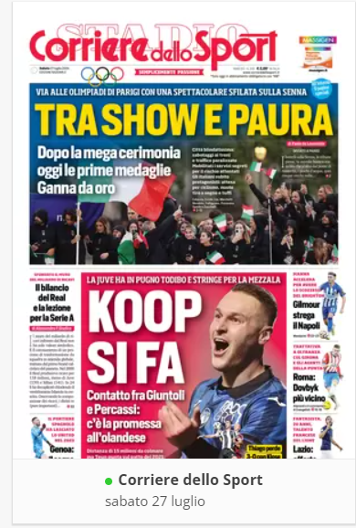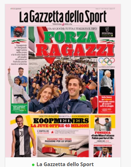 NewsCalcioIn Evidenza “RASSEGNA STAMPA” – Le prime pagine sportive del 27 luglio By Giuseppe Sacco il Lug 27, 2024 - 07:00:42 0 Condividi In primo piano sui principali quotidiani sportivi nazionali Factory della Comunicazione CalcioNapoliRassegnaStampa 0 Condividi FacebookTwitterGoogle+ReddItWhatsAppPinterestE-mail