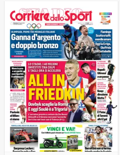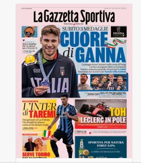NewsCalcioIn Evidenza “RASSEGNA STAMPA” – Le prime pagine sportive nazionali del 28 luglio By Giuseppe Sacco il Lug 28, 2024 - 07:40:42 0 Condividi In primo piano sui principali quotidiani sportivi nazionali Factory della Comunicazione CalcioNapoliRassegnaStampa 0 Condividi FacebookTwitterGoogle+ReddItWhatsAppPinterestE-mail