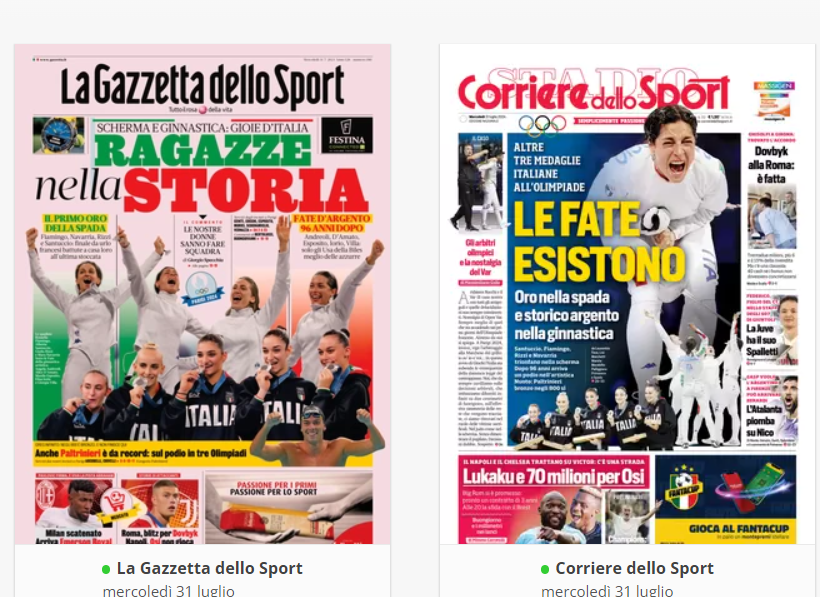 NewsCalcioIn Evidenza “LA RASSEGNA STAMPA” – Prime pagine sportive del 31 luglio By Giuseppe Sacco il Lug 31, 2024 - 07:20:04 0 Condividi In primo piano sui principali quotidiani sportivi nazionali Factory della Comunicazione CalcioNapoliRassegnaStampa 0 Condividi FacebookTwitterGoogle+ReddItWhatsAppPinterestE-mail