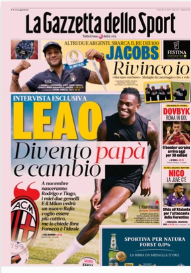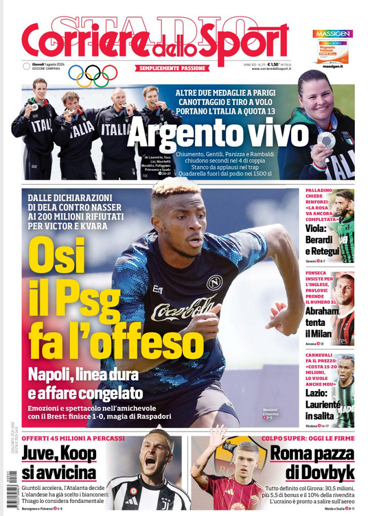 NewsCalcioIn Evidenza “RASSEGNA STAMPA” – Le prime pagine sportive del 1° agosto By Giuseppe Sacco il Ago 1, 2024 - 07:00:35 0 Condividi In primo piano sui principali quotidiani sportivi nazionali Factory della Comunicazione CalcioNapoliRassegnaStampa 0 Condividi FacebookTwitterGoogle+ReddItWhatsAppPinterestE-mail