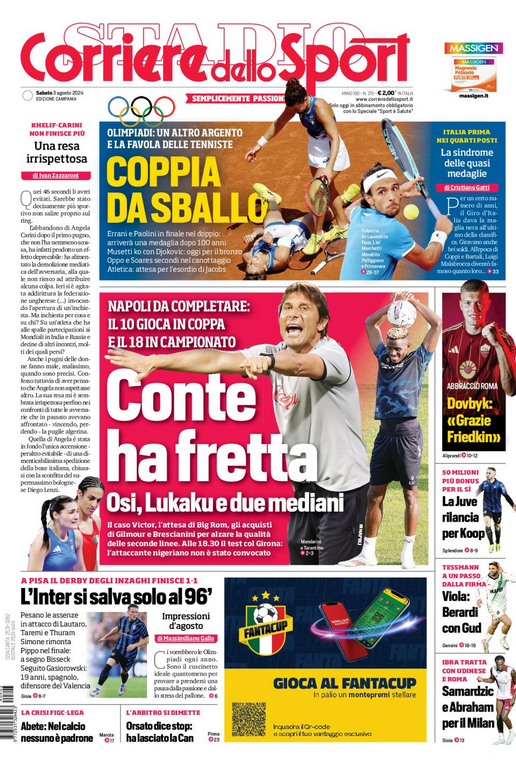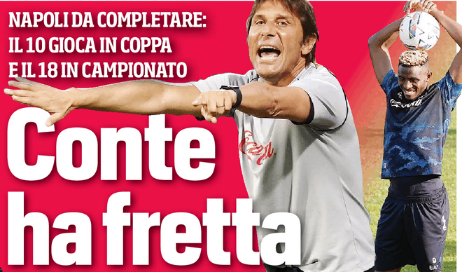 I l Napoli giocherà oggi contro il Girona la quinta e ultima amichevole del ciclo estivo – 4 vittorie, 0 gol subiti – e tra una settimana comincerà ufficialmente la stagione con i trentaduesimi di Coppa Italia. Tra quindici giorni, invece, a Verona con l’Hellas andrà in scena la prima giornata di campionato: e così, considerando tutte le situazioni aperte e il grande dubbio a forma di 9-centravanti che al momento rappresenta un quesito e che tra un po’ potrebbe trasformarsi in un dilemma pericoloso, Antonio Conte comincia ad avere certe inevitabili urgenze.