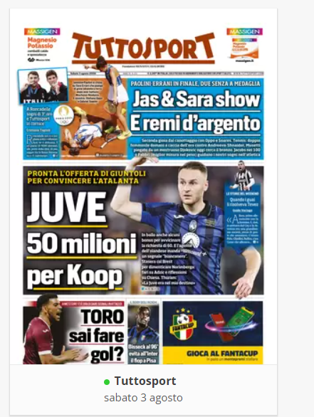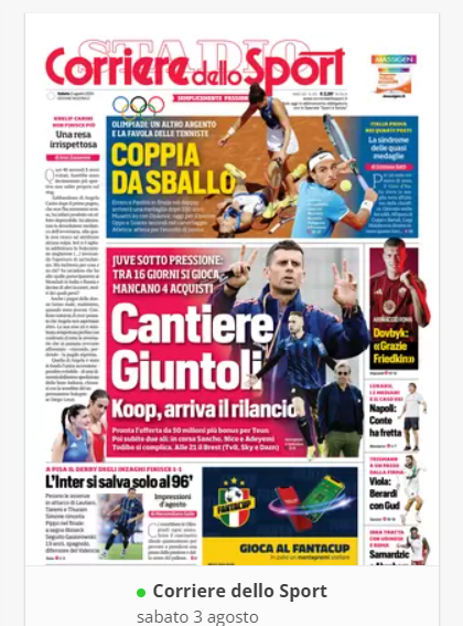 CalcioIn EvidenzaNews “RASSEGNA STAMPA” – Le prime pagine sportive del 3 agosto By Giuseppe Sacco il Ago 3, 2024 - 08:00:59 0 Condividi In primo piano sulle principali pagine sportive nazionali Factory della Comunicazione cacioNapoliRassegnaStampa 0 Condividi FacebookTwitterGoogle+ReddItWhatsAppPinterestE-mail