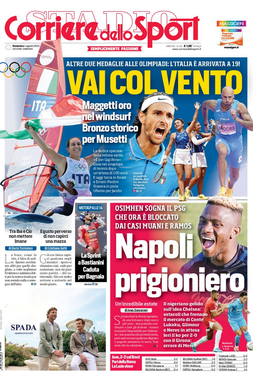 NewsCalcioIn Evidenza RASSEGNA STAMPA” – Le prime pagine sportive nazionali del 4 agosto By Giuseppe Sacco il Ago 4, 2024 - 07:00:53 0 Condividi In primo piano sui principali quotidiani sportivi nazionali Factory della Comunicazione CalcioNapoliRassegnaStampa 0 Condividi FacebookTwitterGoogle+ReddItWhatsAppPinterestE-mail