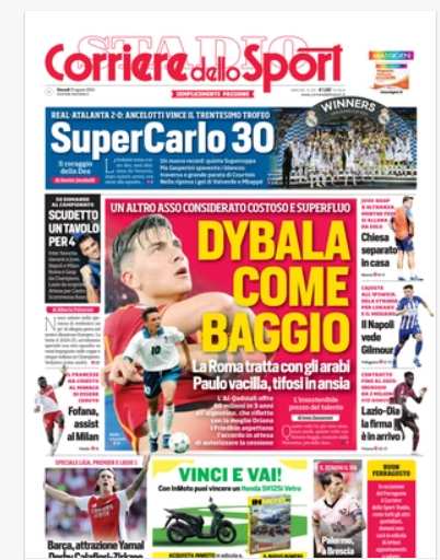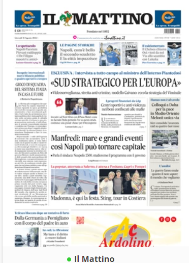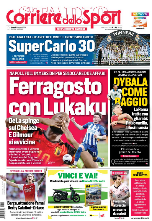NewsCalcioIn Evidenza “RASSEGNA STAMPA” – Prime pagine sportive nazionali del 15 agosto By Giuseppe Sacco il Ago 15, 2024 - 07:20:29 0 Condividi In primo piano sui principali quotidiani sportivi nazionali Factory della Comunicazione CalcioNapoliRassegnaStampa 0 Condividi FacebookTwitterGoogle+ReddItWhatsAppPinterestE-mail