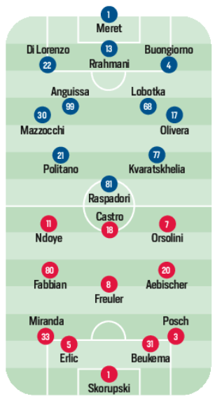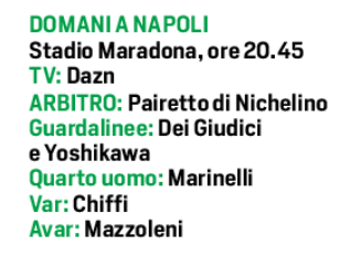 (Grafico) Napoli/Bologna, le due formazioni proposte dal Corriere dello Sport. Saranno in 45mila