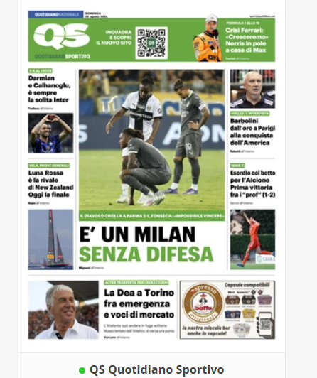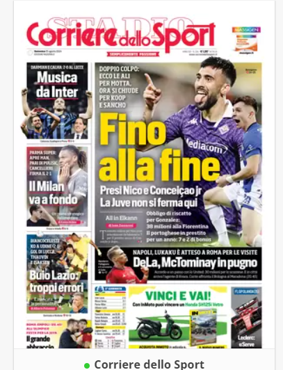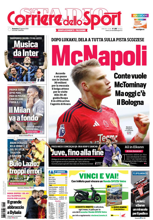 NewsCalcioIn Evidenza “RASSEGNA STAMPA” – Prime pagine sportive nazionali del 25 agosto By Giuseppe Sacco il Ago 25, 2024 - 07:00:29 0 Condividi In primo piano sui principali quotidiani sportivi nazionali Factory della Comunicazione CalcioNapoliRassegnaStampa 0 Condividi FacebookTwitterGoogle+ReddItWhatsAppPinterestE-mail