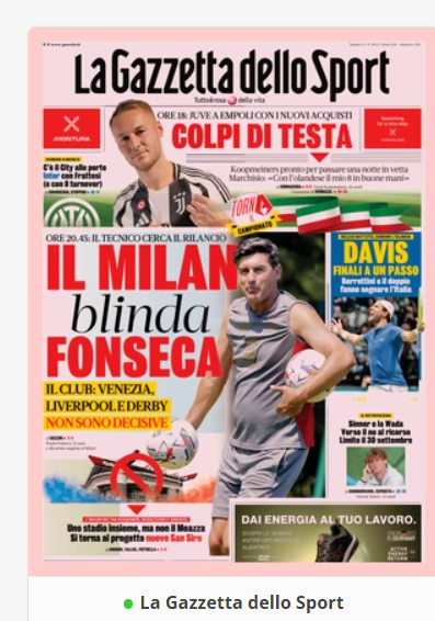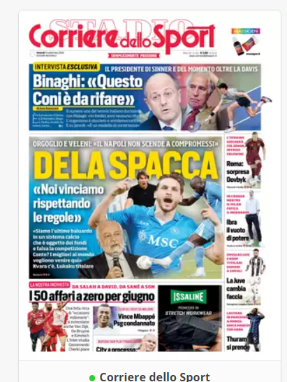 NewsCalcioIn Evidenza ⚽️⚽️RASSEGNA STAMPA⚽️⚽️ – Prime pagine del 14 settembre By Giuseppe Sacco il Set 14, 2024 - 07:00:31 0 Condividi In primo piano sui principali quotidiani sportivi nazionali Factory della Comunicazione CalcioNapoliRassegnaStampa 0 Condividi FacebookTwitterGoogle+ReddItWhatsAppPinterestE-mail