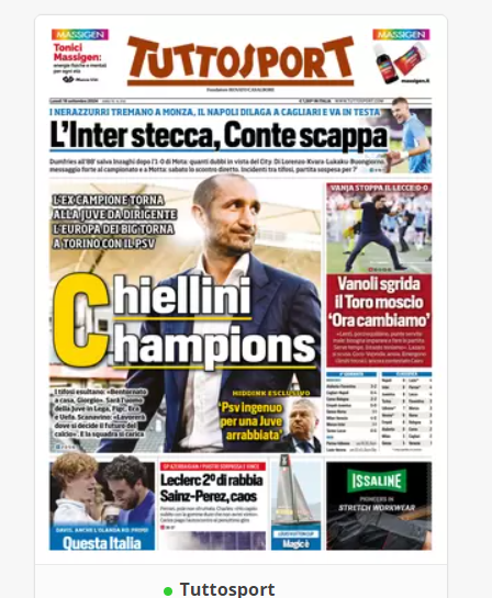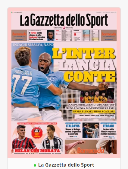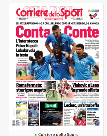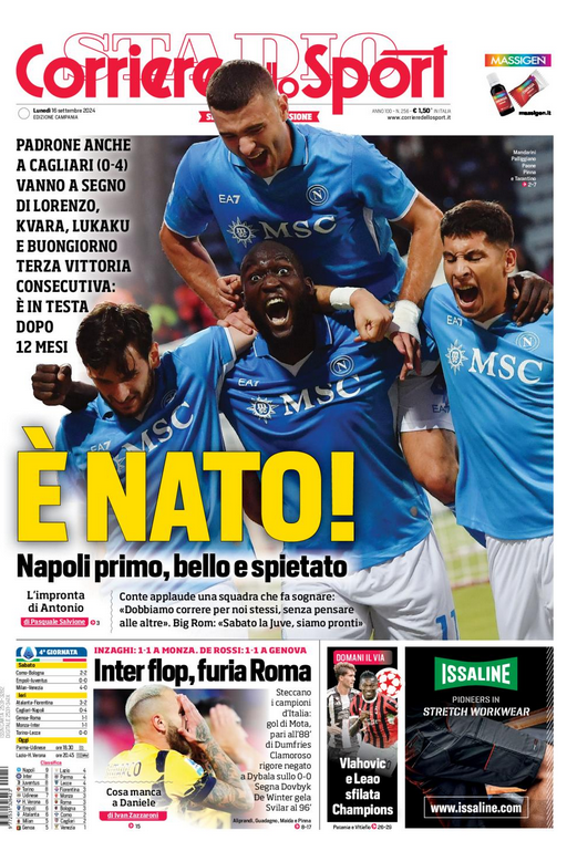 NewsCalcioIn Evidenza ⚽️⚽️”RASSEGNA STAMPA” ⚽️⚽️ – Prime pagine sportive del 16 settembre By Giuseppe Sacco il Set 16, 2024 - 07:00:52 0 Condividi In primo piano sui principali quotidiani sportivi nazionali Factory della Comunicazione CalcioNapoliRassegnaStampa 0 Condividi FacebookTwitterGoogle+ReddItWhatsAppPinterestE-mail
