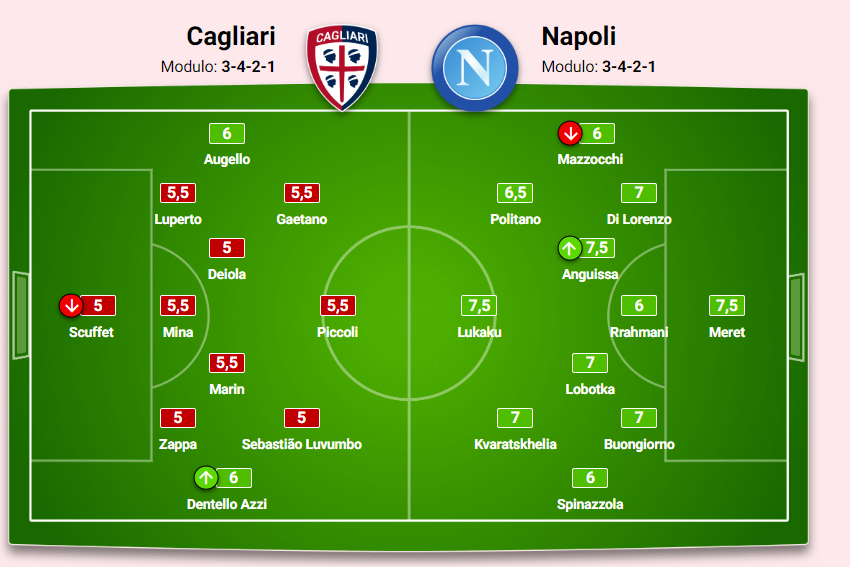 Il migliore dei sardi è Azzi, mentre Zappa, Deiola e Luvumbo deludono. Tra gli ospiti Kvara e Lukaku fanno la differenza, Meret para tutto