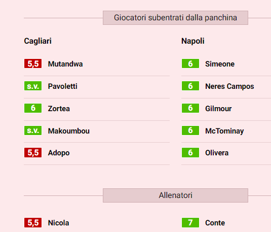 Fa il debutto nel finale, si piazza al posto di Kvaratskhelia, conquista dei falli. Dimostra così di poter essere utile ovunque