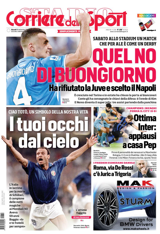 dinastia di grandi difensori centrali collezionati in sequenza dal 2013. Sin dall’arrivo di Raul Albiol, seguito a ruota da Kalidou Koulibaly e per finire da Kim Minjae. L’imbarazzo della scelta, ognuno gigante a suo modo.Ma c’è di più. Alessandro è un giovane uomo con una propria etica fondata sul rispetto, la riconoscenza, l’appartenenza. In estate l’aveva cercato la Juventus, sabato avversaria allo Stadium, ma lui s’è guardato dentro e ha parlato con il cuore Toro: è torinese di nascita, è entrato nel vivaio granata a 7 anni e per i successivi dodici ha scalato le gerarchie fino alla Serie A e alla storia, in cima al colle di Superga, dove da capitano del gruppo ha letto i nomi degli Immortali del Grande Torino nei giorni della memoria delle vittime della tragedia. Due volte, l’ultima il 4 maggio. Quell’episodio l’ha ricordato lui stesso alla sua prima conferenza da giocatore del Napoli, motivando il garbato ma fermo rifiuto alla proposta della Juve: «Mi sembrava in primis di tradire me stesso». C’è chi dice no.