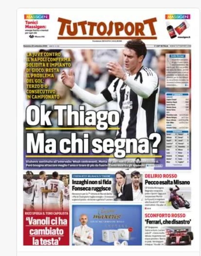 NewsCalcioIn Evidenza ⚽️⚽️RASSEGNA STAMPA⚽️⚽️ “Prime pagine sportive nazionali” By Giuseppe Sacco il Set 22, 2024 - 07:00:34 0 Condividi In primo piano sui principali quotidiani sportivi nazionali Factory della Comunicazione CalcioNapoliRassegnaStampa 0 Condividi FacebookTwitterGoogle+ReddItWhatsAppPinterestE-mail