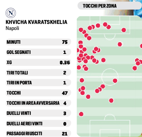 Sembra un secolo fa, invece sono trascorsi appena tre mesi. Conte non ha voluto sentire ragioni. È stato lui a dire no all’offerta del Psg: 200 milioni per Khvicha e Osimhen. Kvara non si tocca. E lo ha messo al centro del progetto. È difficile trovare un’azione pericolosa in cui non ci sia il suo zampino. Non è un caso che a Verona, fin qui l’unica sconfitta del Napoli in campionato, il georgiano uscì a fine primo tempo (sullo 0-0) per un colpo alla testa. Anche al Bentegodi subì un trattamento ad personam, come a Cagliari e ieri sera.