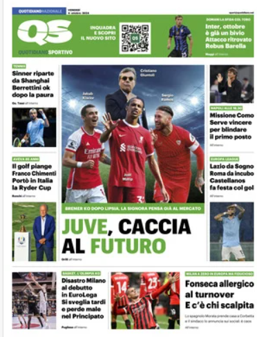 NewsCalcioIn Evidenza ⚽️⚽️”RASSEGNA STAMPA”⚽️⚽️ “Le prime pagine sportive” By Giuseppe Sacco il Ott 4, 2024 - 07:00:20 0 Condividi In primo piano sui principali quotidiani sportivi nazionali Factory della Comunicazione CalcioNapoliRassegnaStampa 0 Condividi FacebookTwitterGoogle+ReddItWhatsAppPinterestE-mail