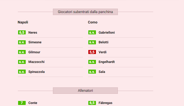 Dentro per Fadera, prima da centrale poi da laterale del centrocampo, ma incide poco. Il Napoli cresce, il Como si deprime