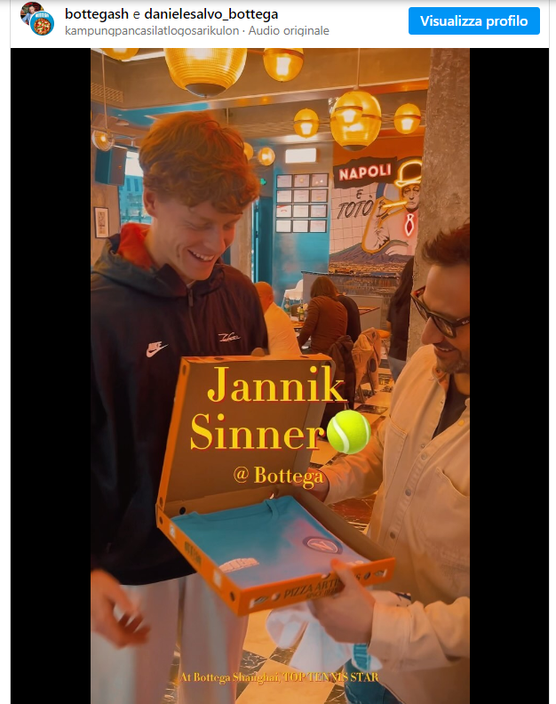 Intanto, nella settimana passata a Shanghai, Sinner è andato a mangiare da “Bottega Pizza Napoletana Shanghai”, godendosi un pranzo tipico Napoletano.