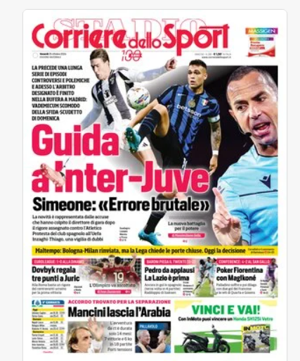 NewsCalcioIn Evidenza ⚽️⚽️RASSEGNA STAMPA⚽️⚽️ – Prime pagine sportive del 25 ottobre By Giuseppe Sacco il Ott 25, 2024 - 07:00:37 0 Condividi In primo piano sui principali quotidiani sportivi nazionali Factory della Comunicazione CalcioNapoliPagineprime 0 Condividi FacebookTwitterGoogle+ReddItWhatsAppPinterestE-mail