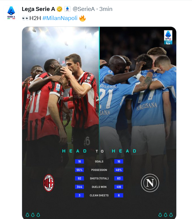 Tra le squadre che hanno giocato più di una gara in Serie A di martedì, il Napoli è quella che ha la media gol più alta: 2.4 con 31 reti in 13 match; dall’altra parte, il Milan non ha trovato la rete nelle tre partite più recenti giocate in campionato in questo giorno della settimana, ma in tre delle ultime quattro ha tenuto la porta inviolata (fa eccezione uno 0-4 contro la Lazio, il 24 gennaio 2023).