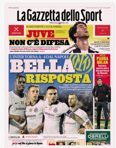 NewsCalcioIn Evidenza ⚽️LA RASSEGNA STAMPA⚽️ – Le prime pagine del 31 ottobre By Giuseppe Sacco il Ott 31, 2024 - 07:00:33 0 Condividi In primo piano sui principali quotidiani sportivi nazionali Factory della Comunicazione CalcioNapoliRassegnastama 0 Condividi FacebookTwitterGoogle+ReddItWhatsAppPinterestE-mail