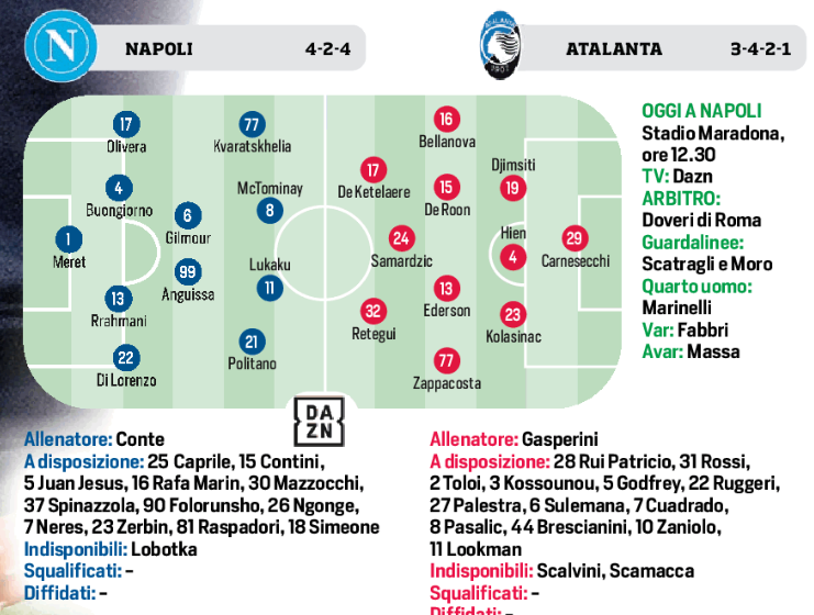 (Grafico) – Napoli/Atalanta: le possibili formazioni del CdS