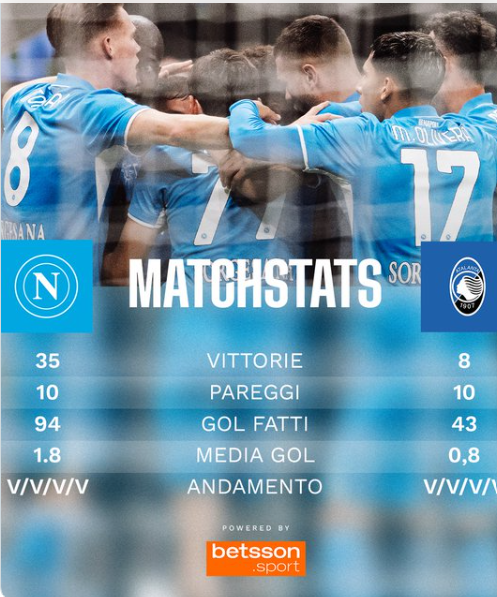 L’Atalanta ha vinto l’ultima trasferta contro il Napoli in campionato (3-0 lo scorso 30 marzo) e solo una volta ha ottenuto due successi fuori casa di fila contro i partenopei in Serie A: correva l’anno 1997 con Mondonico allenatore.