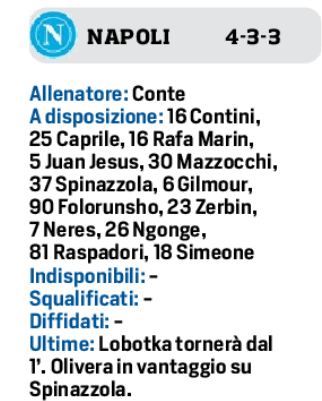 Conte, comunque, sotto pressione riesce sistematicamente a fare faville come ha insegnato la trasferta con l’Inter: il fuoco lo scalda, non lo brucia. È preparato a tutto ed è anche stato molto chiaro: non avendo potuto ricavare riferimenti e indicazioni dalle partite precedenti della Roma, s’è dedicato soltanto alla sua squadra. Conoscendolo, avrà preparato un piano A e una serie di alternative: a seconda dell’atteggiamento della Roma – difficilmente sfrontato e anzi presumibilmente molto guardingo – muoverà le pedine chiave. Due su tutte: in genere i movimenti di McT dettano il passaggio dal 4-3-3 al 4-2-2-2 in fase offensiva, con Kvara e Politano alle spalle di Lukaku e McT a sostegno di Rom; quelli di Politano sulla fascia destra, invece, determinano lo schieramento a cinque o a quattro in fase di non possesso (5-4-1 o 4-5-1). Si vedrà.