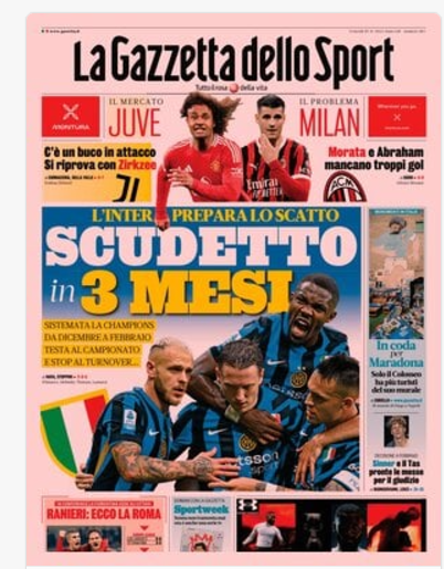 NewsCalcioRassegna Stampa 😀buongiorno da ilnapolionline.com😀 – ⚽️RASSEGNA STAMPA⚽️ – Le prime pagine sportive del 29 novembre By Giuseppe Sacco il Nov 29, 2024 - 07:00:59 0 Condividi In primo piano sui principali quotidiani sportivi nazionali Factory della Comunicazione CalcioNapoliRassegnaStampa 0 Condividi FacebookTwitterGoogle+ReddItWhatsAppPinterestE-mail