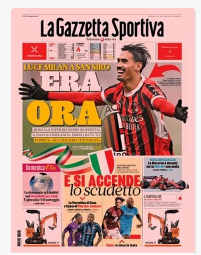 NewsCalcioIn Evidenza ⚽️-LA RASSEGNA STAMPA -⚽️ Le prime pagine del 1°dicembre By Giuseppe Sacco il Dic 1, 2024 - 07:00:25 0 Condividi In primo piano sui principali quotidiani sportivi nazionali Factory della Comunicazione CalcioNapoliRassegnaStampa 0 Condividi FacebookTwitterGoogle+ReddItWhatsAppPinterestE-mail