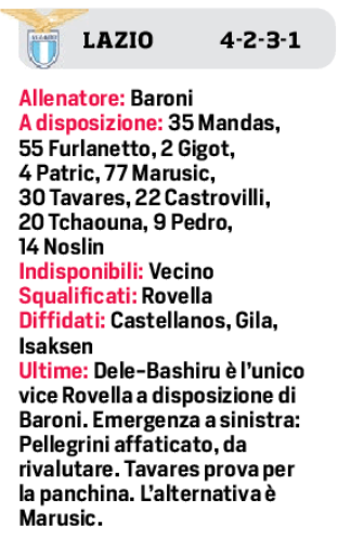 (Grafico) Serie A- Napoli/Lazio le probabili formazioni per il CorrSport