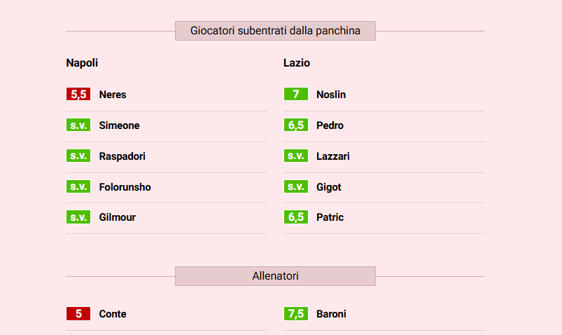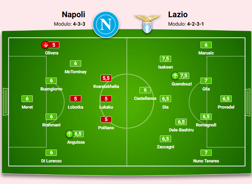Su X.comCalcioNews La Gazzetta vota: nella squadra di Conte il migliore è Anguissa, in quella di Baroni nessuna insufficienza By Giuseppe Sacco il Dic 9, 2024 - 08:40:55 0 Condividi Napoli-Lazio, le pagelle: Guendouzi che dedizione, 7,5. Lukaku abulico, 5 Factory della Comunicazione Fonte: Gazzetta CalcioGAZZETTALazioNapoli 0 Condividi FacebookTwitterGoogle+ReddItWhatsAppPinterestE-mail