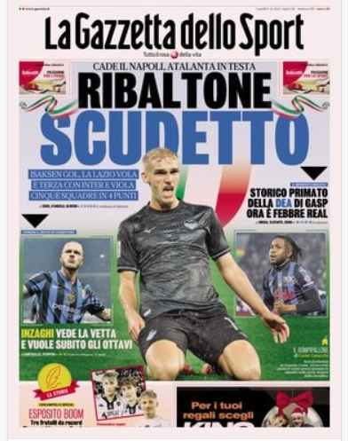 Su X.comCalcioNews “RASSEGNA STAMPA” Le prime pagine del 9 dicembre By Giuseppe Sacco il Dic 9, 2024 - 07:00:08 0 Condividi In primo piano sui principali quotidiani sportivi nazionali Factory della Comunicazione CalcioNapoliRassegnaStampa 0 Condividi FacebookTwitterGoogle+ReddItWhatsAppPinterestE-mail