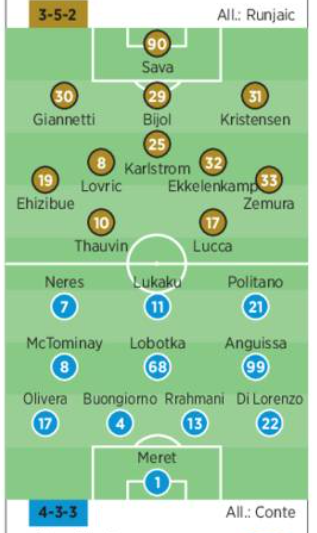 Runjaic negli ultimi tempi ha cambiato atteggiamento tattico, abiurando la difesa a tre, ma non è escluso che domani possa anche tornare al passato, magari a partita in corso. Tra i pali spazio a Sava che si prende le chiavi della porta bianconera causa infortunio del titolare Okoye. In difesa occhi puntati sopratutto su Bijol (nel mirino del Napoli) che avrà Giannetti al suo fianco con Ehizibue e Zemura sulle fasce. In mediana complice anche l’infortunio di Zarraga spazio a Ekkelenkamp, Karlstrom e Lovric, con Atta pronto all’esordio da titolare. Tandem offensivo composto da Lucca e Thauvin.