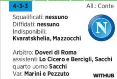 Le formazioni di Udinese e Napoli come le immagina Il Mattino