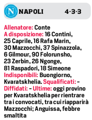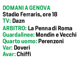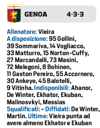 (Grafico) Così in campo . Il Cds dà le sue formazioni di Genoa e Napoli