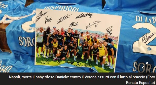 Allenatore e squadra, in chiesa, non c’erano: loro avevano già salutato il compagno. Come? Beh, sai com’è, nessuno può entrare nello spogliatoio quando si fanno le riunioni. È un luogo sacro. Conte e tutto il gruppo che con Daniele ha vissuto sei mesi di vigilie, partite e ritiri a chiacchierare di calcio e mercato, di sogni e di gloria, di sacrifici e dolori, hanno deciso di chiudere il mondo fuori e di mettersi in cerchio con lui. Hanno giocato insieme, da squadra, come sempre. Si sono abbracciati e tenuti per mano. E alla fine si sono detti ciao, alla prossima. Ci si trova alla partita: domenica, Napoli-Verona al Maradona. Figuriamoci, il solito posto. Nessuno ha diritto di entrare nello spogliatoio, ma tutti hanno il dovere di sapere quanto amore Conte e i suoi ragazzi hanno ricevuto e donato a Daniele e quanto dolore hanno provato ieri salutandolo nello spogliatoio senza tetto e pareti. La loro storia non finirà mai. Il giocatore numero 12, ora, è un angelo azzurro che vola con il Napoli. Fonte: CdS