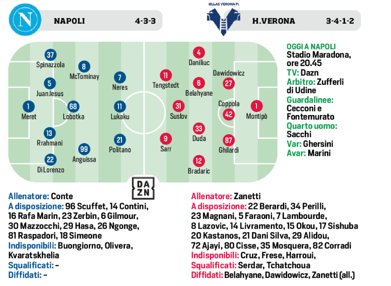 (Grafico) Il Cds mette in campo Napoli e Verona. In panchina anche Scuffet
