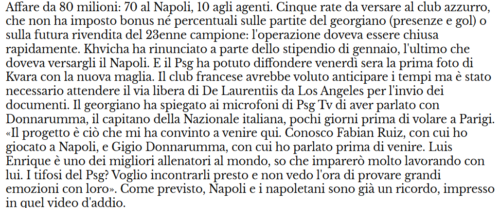 Kvicha Kvaratskhelia è un nuovo giocatore del PSG, e al di là di tutte le voci che girano, oggi Il Mattino si sofferma sui mal di pancia che arrivano da più lontano.