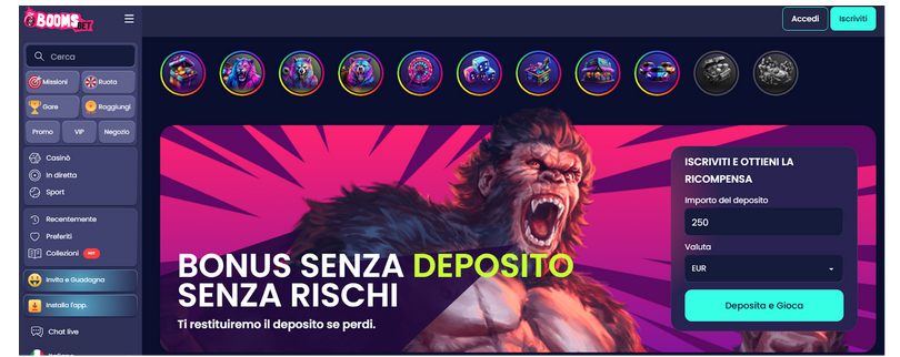 Booms Bet offre una combinazione di giochi classici e moderni, supporto clienti rapido e promozioni settimanali. È una scelta ottimale per chi desidera divertirsi con un deposito minimo e una grande varietà di opzioni.
