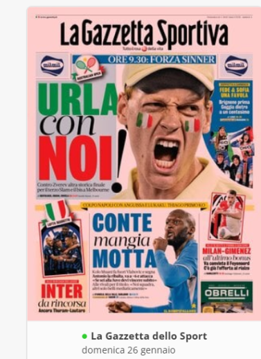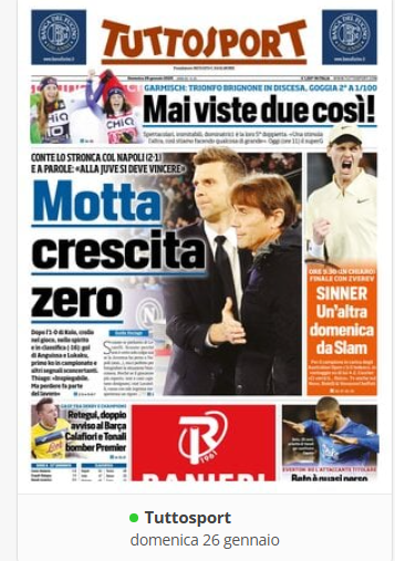 Su X.com “RASSEGNA STAMPA” – Prime pagine sportive nazionali del 26 gennaio By Giuseppe Sacco il Gen 26, 2025 - 07:00:35 0 Condividi In primo piano sui principali quotidiani sportivi nazionali Factory della Comunicazione CalcioNapoliRassegnaStampa 0 Condividi FacebookTwitterGoogle+ReddItWhatsAppPinterestE-mail