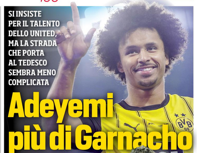 I l Napoli ha sette giorni di tempo per mettere a segno due colpi: l’uomo che dovrà prendere il posto di Kvara in rosa, offrendo nuove soluzioni e alternative a Conte sia dal primo minuto sia a partita in corso; e un difensore. Il ds Manna sta percorrendo per cielo e per terra strade sbarrate o piene di ostacoli per tenere in piedi le trattative che portano ai due obiettivi individuati in attacco: Alejandro Garnacho, 20 anni, esterno sinistro di piede destro, argentino dello United valutato 65 milioni di euro (il preferito in assoluto per caratteristiche); e Karim Adeyemi, 23 anni, mancino tedesco del Borussia che come il collega gioca a sinistra, più abbordabile per cifre – tra i 45 e i 50 milioni di valore – ma sempre piuttosto restio a lasciare la Bundes a gennaio. E non solo: il suo primo sogno è sempre stato la Premier, soprattutto dopo aver avuto colloqui con Chelsea e Liverpool per la prossima estate. Insomma, due piste complesse: una si potrebbe sbloccare limando la differenza economica, mentre l’altra superando le perplessità del giocatore al trasferimento. Mica facile, per carità.